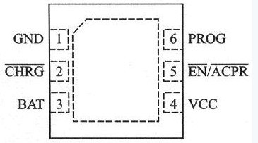 LTC4065采用了熱處理能力較強的6引腳小外形封裝(DFN),且實現產品無鉛化,底部采用裸露襯墊,直接焊接至PCB以實現電接觸和額定散熱性能。引腳排列如圖1所示。