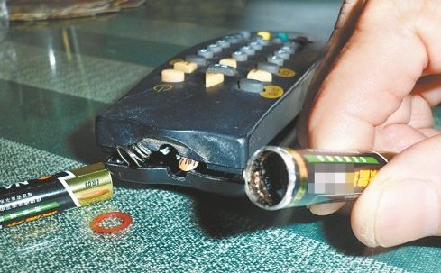 2006年某日,南昌市徐女士家的電視機遙控器無緣無故發生爆炸,遙控器下半截被炸掉,里面的金屬殼扭曲變形,內芯完全露了出來。經維修人員檢測,遙控器并沒有問題,初步判斷是遙控器里的電池引起了爆炸。